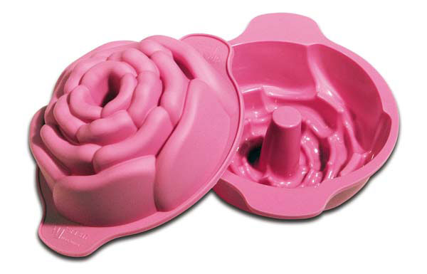 Kvalitní silikonová forma Silikomart na upečení 2 malých moučníků ve tvaru Růže.